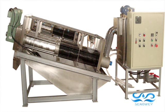 疊螺機(jī)脫水的工作原理是利用螺旋軸的旋轉(zhuǎn),使污泥在螺旋軸和螺桿之間形成濾餅,并通過(guò)濾餅的過(guò)濾和擠壓來(lái)分離水分。疊螺機(jī)通常需要在污泥進(jìn)入機(jī)器之前進(jìn)行絮凝和沉淀,以減少雜質(zhì)和懸浮物對(duì)機(jī)器的堵塞和磨損。因此,絮凝劑的添加是疊螺機(jī)污泥脫水過(guò)程中必不可少的一步。