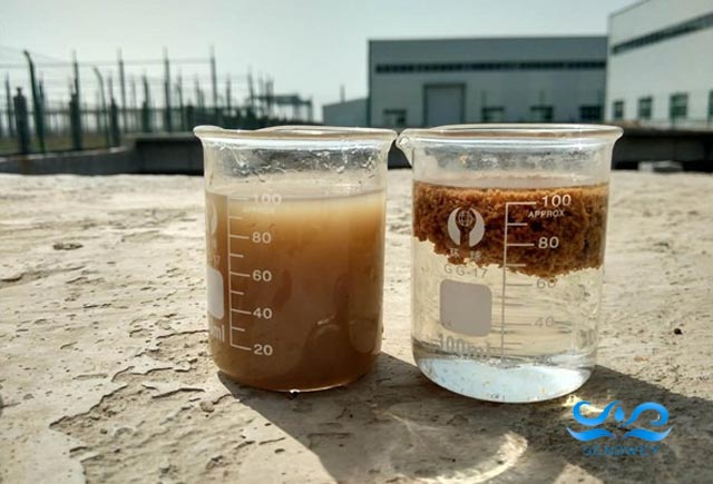 先將PAC聚合氯化鋁用水溶解,投藥比例在千分之三到千分之五,用清水溶解攪拌之后再行投加到污水中,攪拌觀察水中形成細小顆粒懸掛在燒杯壁上,如果是直接的上機實驗,在水池中的話,可以用時間控制法,間隔大概1-3分鐘,然后在投加PAM聚丙烯酰胺。要注意PAM絮凝劑一定要按照低配比濃度,藥劑溶液按照千分之一到千分之三的比例用清水溶解即可,溶解時間大概在45-60分鐘,觀察水溶液中沒有肉眼可見的絮凝團塊方可。PAM絮凝劑的用量非常省,一點就可以出效果,加藥時一定要避免掉“量越大效果越好”的錯誤思維,如果投加絮凝劑后效果不佳,再行投加時每次加很小很少的量,一點一點的增大藥量來試,直到形成明顯的泥水分層現象即可。